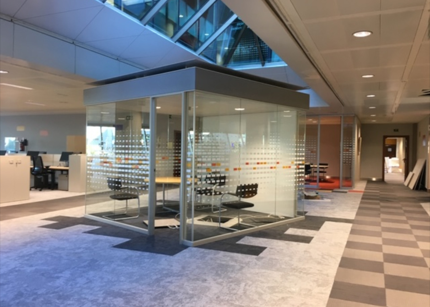 Starting from our T100 system, taking advantage of its self-supporting and structural qualities, we have developed this innovative product as the ideal solution for configuring independent rooms, within common spaces.