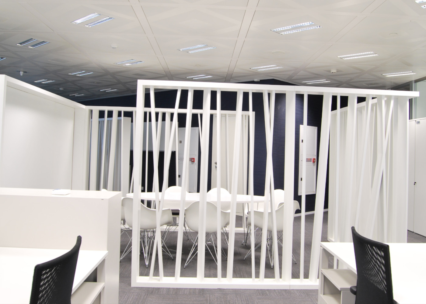 Taking advantage of the resistance and firmness offered by our t-100 system and adding the necessary hardware, we can offer compartmentalization solutions that do not reach the ceiling, when the project requires it, allowing to reach up to 2.00 m in height depending on the configurations. Very suitable solutions to replace the traditional dividing screens for workstations, providing a lighter, more aesthetic and economical solution. Manufacturing tailored to each project and with the proposed finishes.