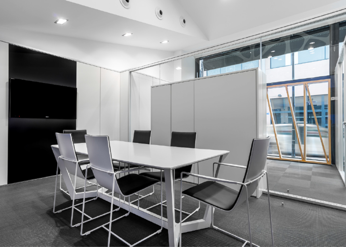 TILED PARTITION WITH TV MONITOR